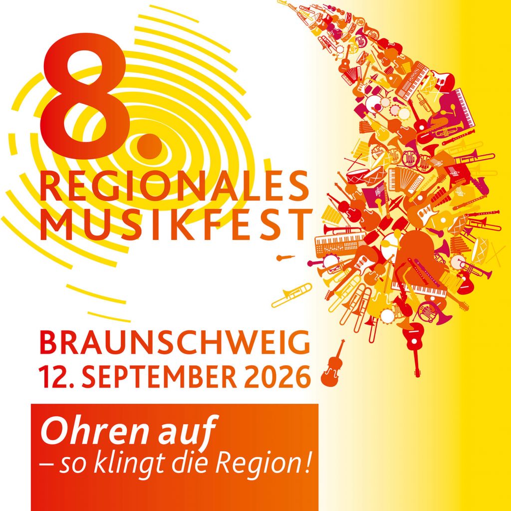 Sie sind Musiker*in und leben in Wolfsburg, Braunschweig, Salzgitter oder im Landkreis Gifhorn, Peine, Helmstedt, Goslar oder Wolfenbüttel und möchten gern als Solokünstler*in oder mit Ihrem Ensemble, Ihrer Band, Ihrem Chor, Orchester, Verband oder Verein beim 8. Regionalen Musikfest am 12. September 2026 in Braunschweig dabei sein? Dann füllen Sie bitte dieses Online-Anmeldeformular aus und schicken Sie es mit dem Absenden-Button ab. Anmeldefrist ist der 20.03.2026!