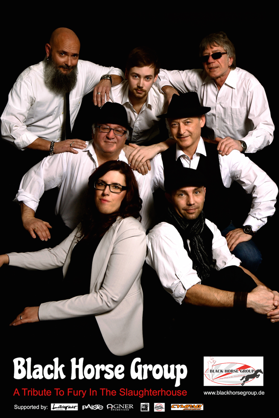 Mit Fury in the Slaughterhouse, ging 2008 eine der besten deutschen Bands mit der Farewell And Good Bye-Tour letztmalig auf Reisen und löste sich anschließend offiziell auf. Der Schmerz bei zigtausend Fans war groß. Sie wollten und konnten das Ende der Legende nicht begreifen. Doch, es gibt mehr als einen Trost! Es gibt die Black Horse Group, kurz BHG genannt. Die BHG lebt die Legende weiter! …und bringt die Fury-Songs weiterhin live auf die Bühnen! Vielleicht nicht immer zu 100% original aber immer originell und mit der nötigen Portion Rock’n’Roll im Herzen…! Léo – Drums Wolle – Bass Hinrich – Guitar André – Guitar Frank – Keyboard Melanie – Vocals Micha – Vocals