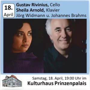 Unter dem Motto ‚Rückblick und Ausblick‘ trägt das gut aufeinander eingespielte Duo Gustav Rivinius – Cello und Sheila Arnold – Klavier Werke von Johannes Brahms und Jörg Widmann vor. So erklingen von Johannes Brahms Klavierstücke und Intermezzi aus op....
