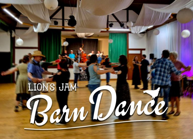 Der Lion’s Jam Barn Dance ist kein Line Dance, auch kein Square Dance, es ist Contra Dance – unkomplizierter amerikanischer Folk-Tanz nach Ansage. Wir haben den erfahrenen Square Dance Caller Jan Kador von den Lion Town Squares für unseren Barn Dance gewinnen können. Jeder kann ohne Vorkenntnisse mitmachen, die Tänze werden erst erklärt uns dann mit Anweisungen getanzt – im Kreis, in der Reihe oder Do-si-do. Und wenn es mit den Schritten mal nicht klappt, ist es genau so lustig… Wer laufen kann, kann mitmachen. Beim ersten Barn Dance reichte das Alter der Tänzer:innen von fast drei bis zu Mitte siebzig.