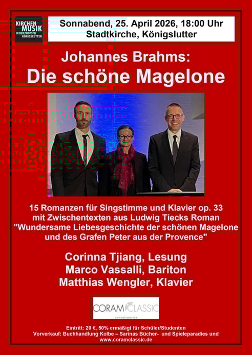 15 Romanzen für Singstimme und Klavier op. 33 mit Zwischentexten aus Ludwig Tiecks Roman „Wundersame Liebesgeschichte der schönen Magelone und des Grafen Peter aus der Provence“
