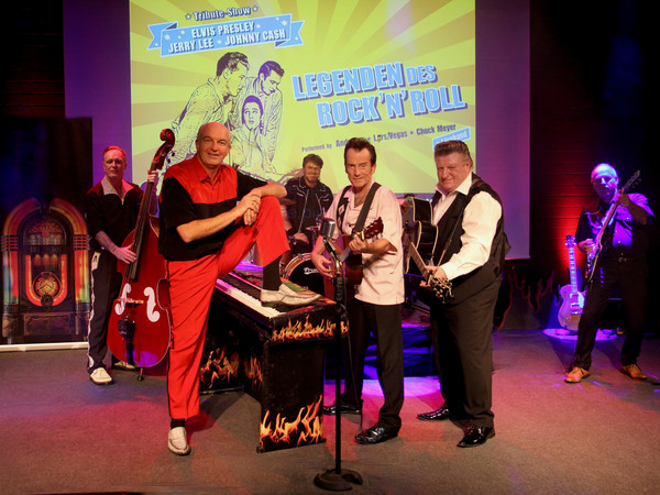 „Legenden des Rock’n’Roll“ ist eine atemberaubende Show, die die unvergesslichen Hits von Elvis, Jerry Lee und Johnny Cash zu neuem Leben erweckt. Von „Jailhouse Rock“ über „Great Balls of Fire“ bis hin zu „Ring of Fire“ – diese Show ist ein Fest für die Sinne! Erleben Sie die ersten Tonaufnahmen im legendären SUN-Studio, die furiosen Pianoshows von Jerry Lee, Johnny Cashs legendäre Gefängnisauftritte und die glanzvollen Konzerte von Elvis in Las Vegas. Sogar die gemeinsamen Begegnungen und spontanen Sessions der Superstars werden authentisch dargestellt!