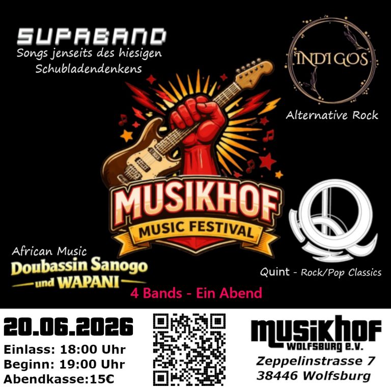 Veranstaltungsort: Musikhof-Wolfsburg e.V., Zeppelinstraße 7, 38446 Wolfsburg