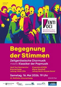 Im Herbst 2024 war der Venti Voci Kammerchor Braunschweig zu Gast beim Ensemble aCHORd in Wiener Neustadt – nun kommt es zur Wiederbegegnung in Braunschweig. Beide Chöre gestalten ein gemeinsames Konzertprogramm...